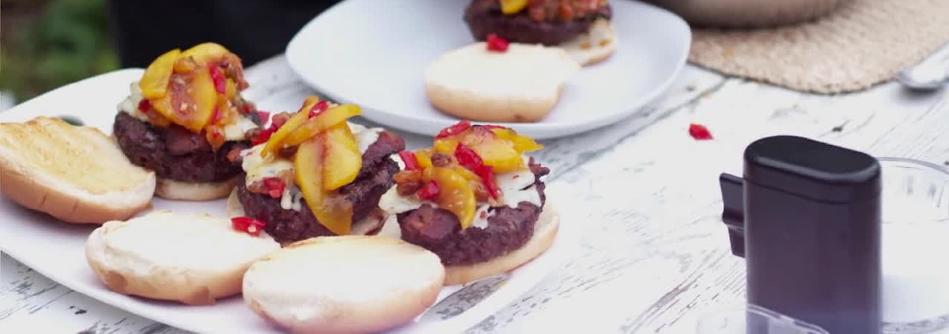 The focus is on sandwiches with a rosemary honey burger and cheesy kielbasa with kimchee.