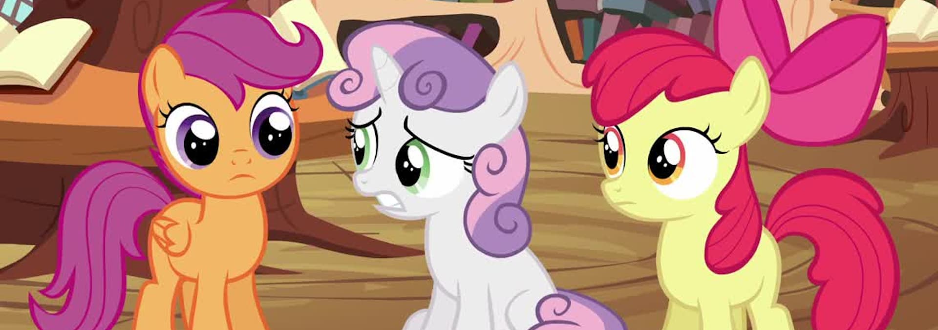 The Cutie Mark Crusaders are thrilled when Twilight offers to help them with their studies.
