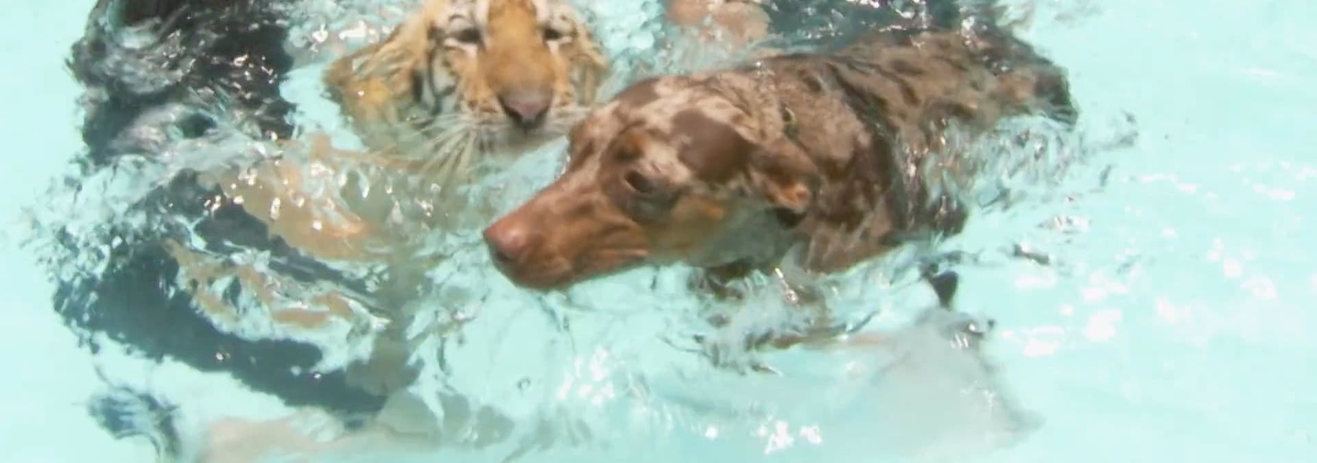 A high-energy hound meets his match and finds the ideal playmate in a tiger cub named Thunder.