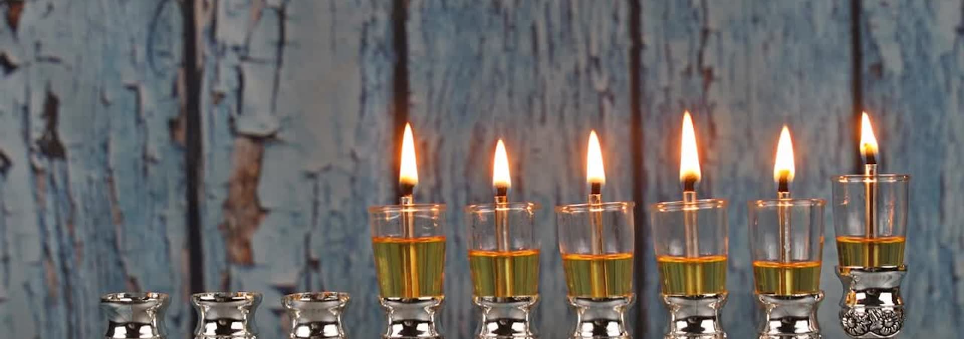 Enjoy these ambient candles with winterscape music during Hanukkah day eight with your family and friends.