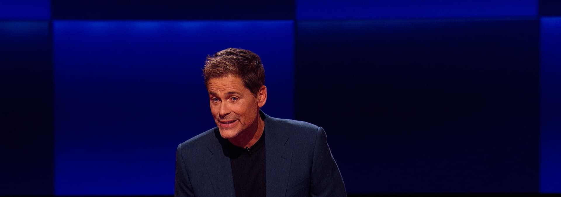 Contestants compete in a trivia battle on a massive game show floor for a grand prize.