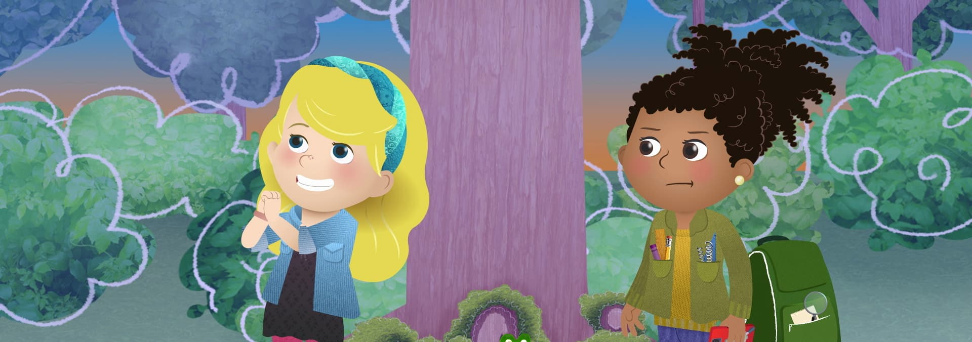 Addison and her classmates are tasked with playing a piece of music. / Addison’s and Tess’s fairy garden school project attracts a mysterious glowing frog.