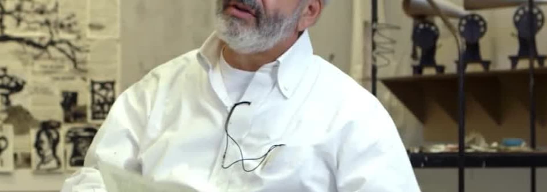 Behind the scenes footage of artists' studios and workspaces, featuring El Anatsui and Ablade Glover.