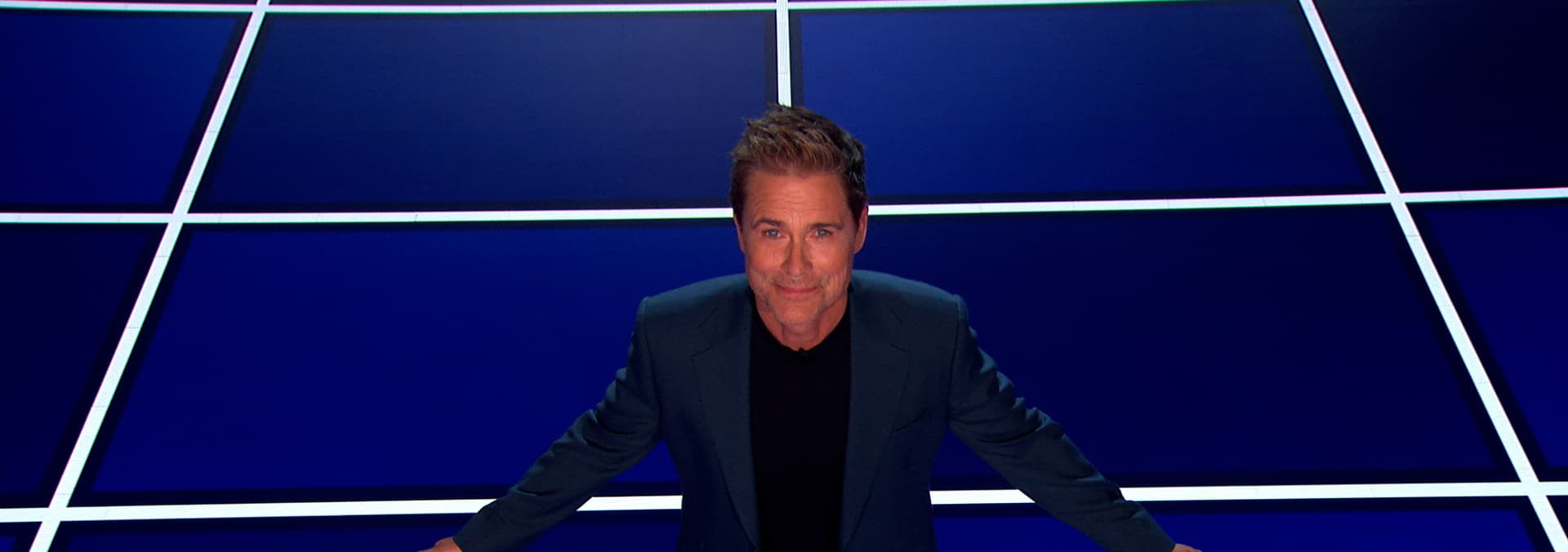 Contestants compete in a trivia battle on a massive game show floor for a grand prize.