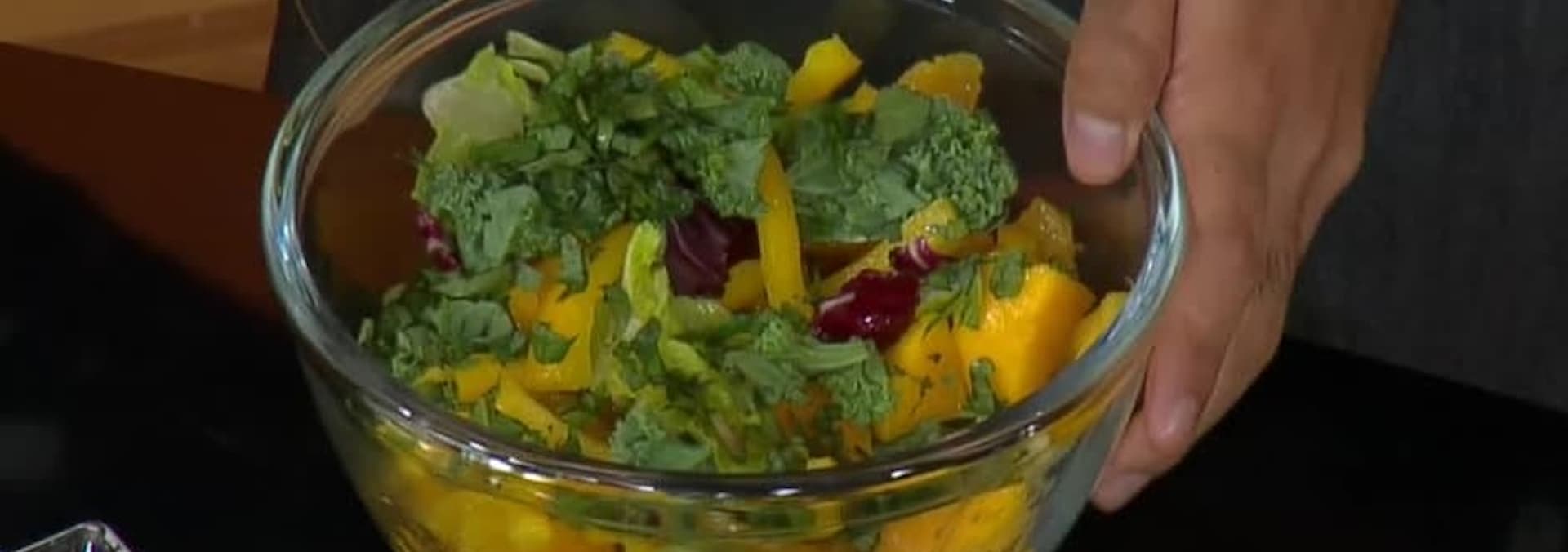 El Chef Mariano preparará la ensalada “flor del sol”, pollo ranchero y de berenjenas al ajillo y un crisp de manzana y granola con helado de yoghurt.
