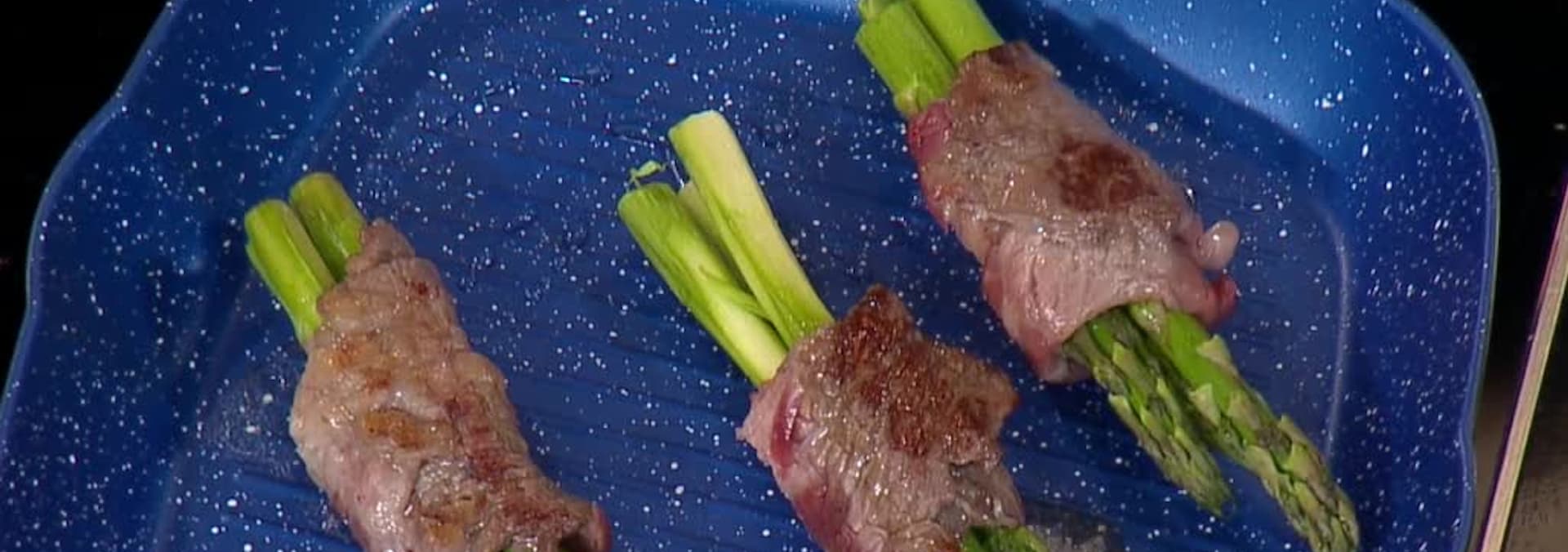 Acompaña al chef Mariano Sandoval a cocinar una comida de tres tiempos. Rollitos de rib eye y espárragos, camarones en salsa cremosa y un crème brulée