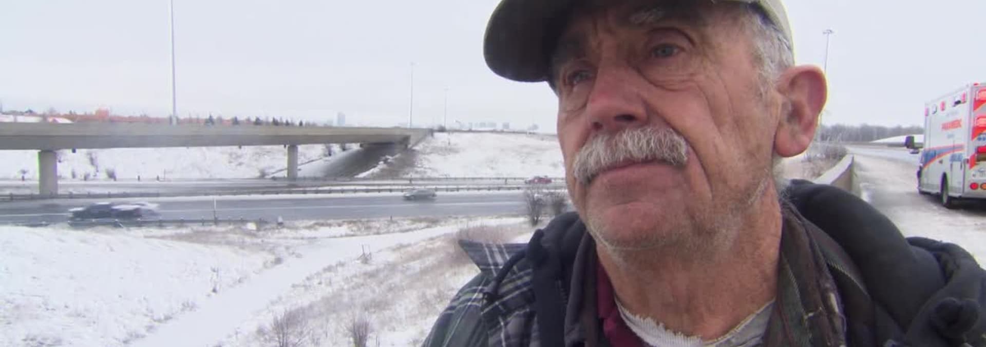 A whiteout pile-up scatters heavy I-beams across the highway.