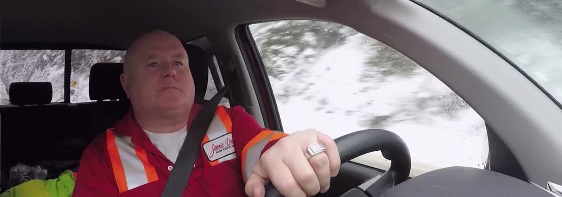 Al and Gord search for a lost logging truck on a snowy back road.