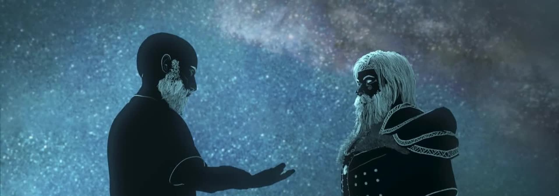 At a banquet, Loki insults the gods, exposing their weaknesses. Punished, he is chained under venom, forced to watch his sons kill each other. Odin knows Ragnarök is near.