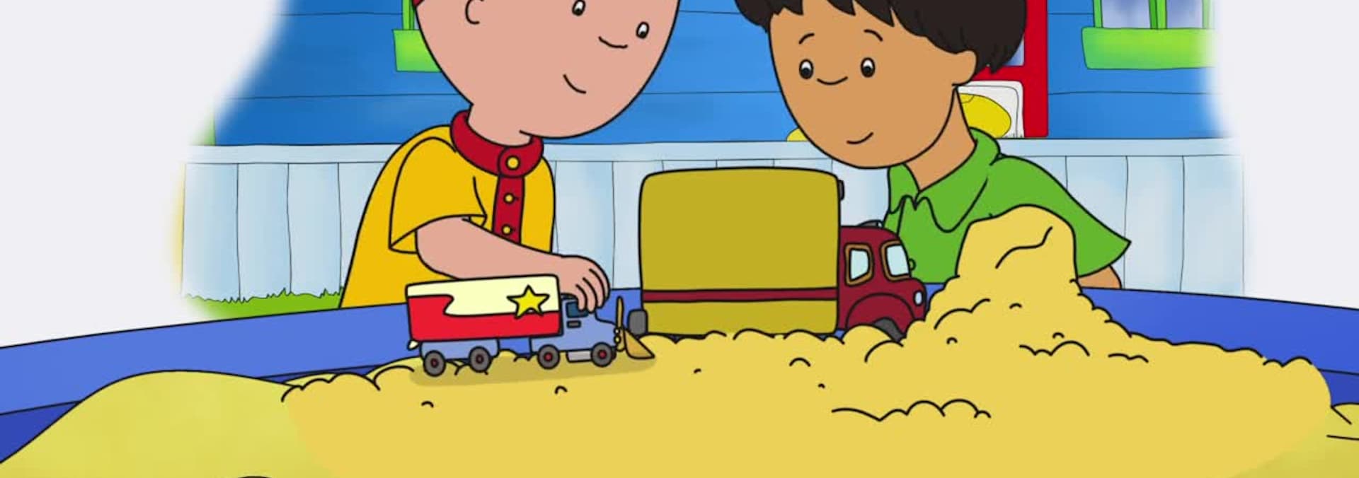 Caillou decides to trade his tiny toy shovel for some stickers... but changes his mind when he sees what his friend, Jay, can do with that toy shovel! Then Caillou tries to get the shovel back even though they agreed to no tradebacks and eventually hurts his friends feelings. When Caillou realizes Jay is upset, he decides to stick to his word, knowing that their friendship and his word - is more important. // Caillou desperately wants a pair of snazzy light-up sneakers like the ones Clementine has... until he realizes she cant jump in puddles while wearing them (for fear of ruining the lights), or get the shoes dirty, or kick a ball for fear of scratching them. Caillou decides his old sneakers are just fine because he can do so many fun things in them! // Rollie Racers (toy cars) are the latest craze, and Caillou wants them... lots of them! Caillou begs his parents to take him to the mall, and they finally agree but only after Caillou helps Daddy with a very special chore! Caillou helps Daddy fix their car... and he begins to have so much fun, he forgets all about going to the mall for Rollie Racers.