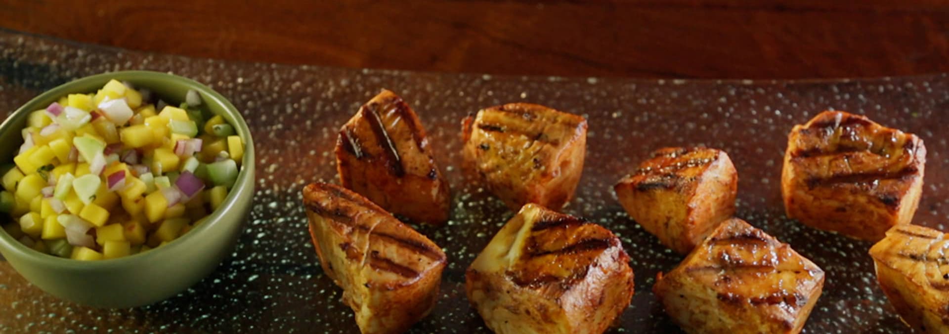 Cold-smoked scallops with smoked tomatoes, jicama-mango salsa; smoke-roasted chicken with horseradish glaze; apple-smoked ribs with prickly pear barbecue sauce.