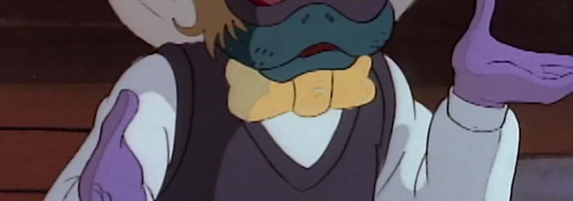 Plotting revenge, Baxter, who has been turned into a fly-like creature, delivers a borellium crystal to Krang and Shredder whose Technodrome is low in power.