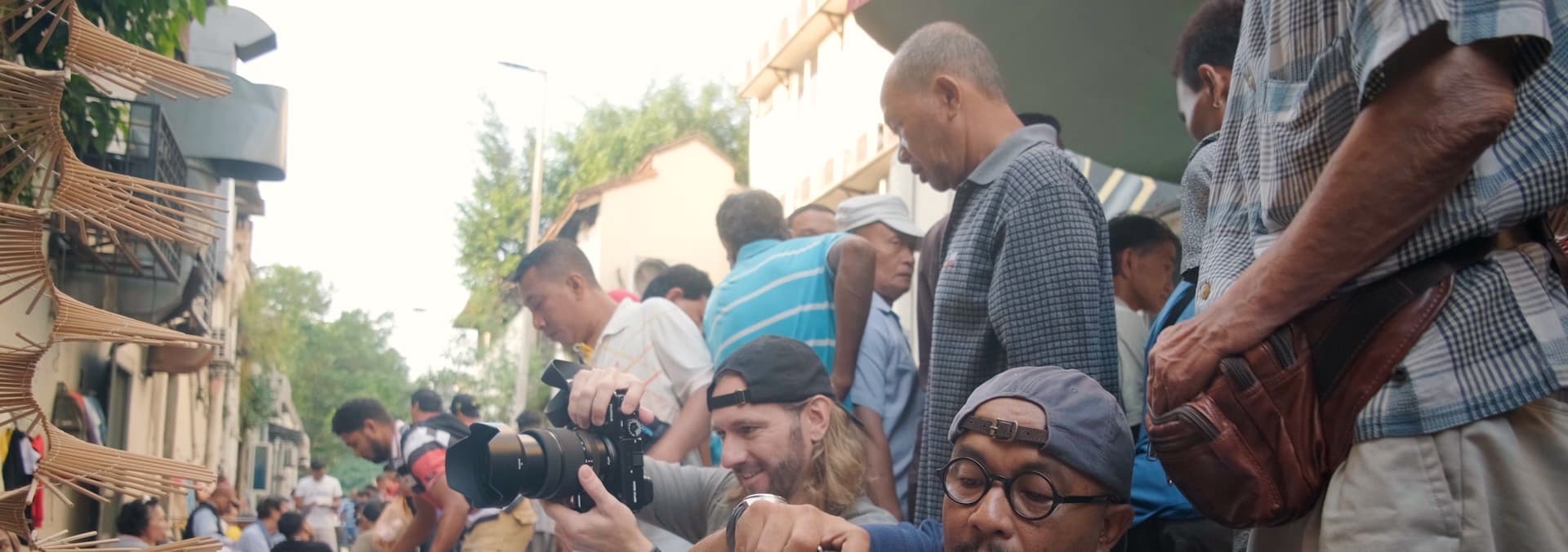 Elia shoots street photography in Malaysia with a local photographer.