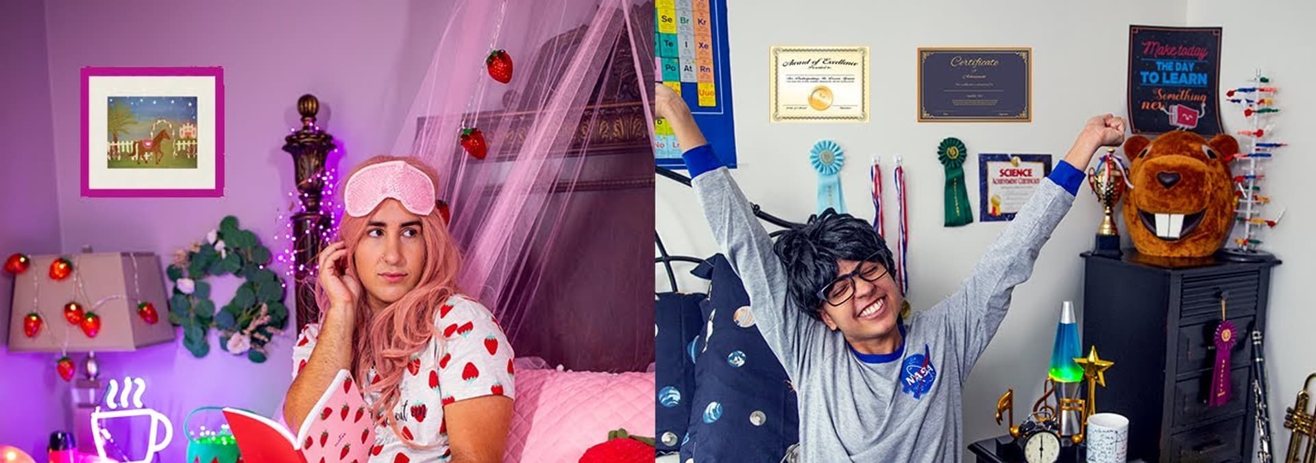 Summer morning routine comparison between a girl and a boy. Summer break is the best time of year.