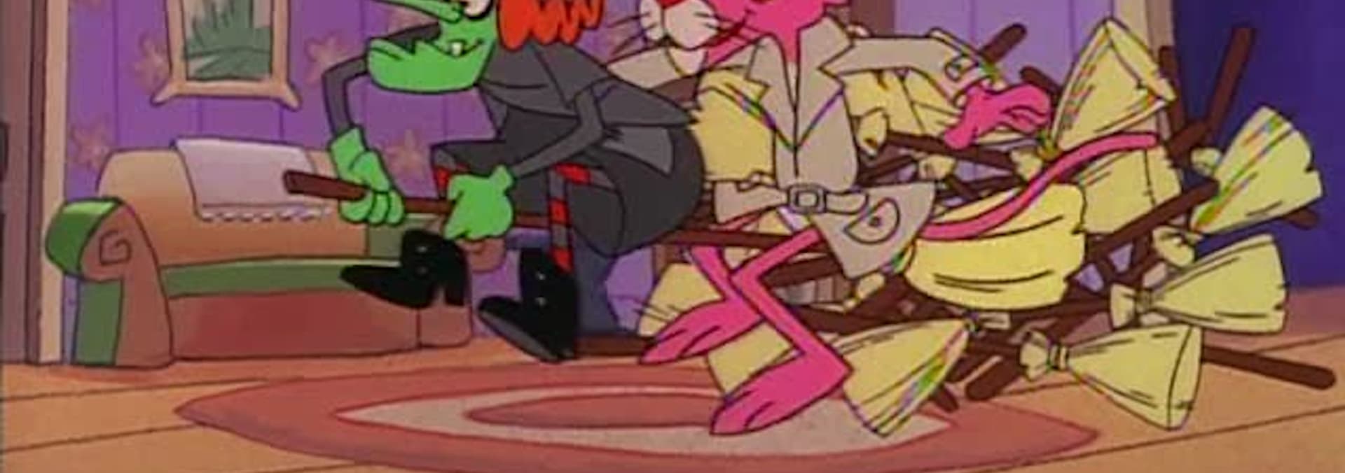 In "Pinky in Toyland," as sole witness to an outlandish bank heist, the Panther evades robbers by masquerading as a spoiled rich kid's stuffed animal. And in "The Detective of Oz," Pinky works as a hard-boiled detective in the Emerald City. His world gets turned upside down when a luscious dame named Dorothy needs help finding her stolen ruby pumps.