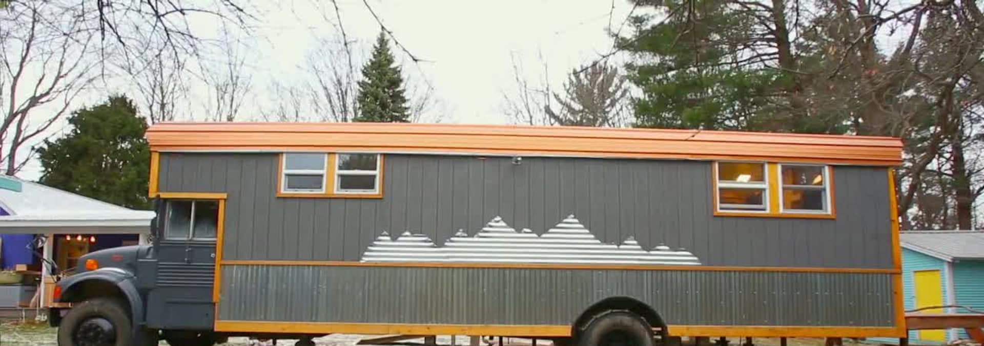 Seth uses drift wood and relics to turn a school bus into a bachelor pad.