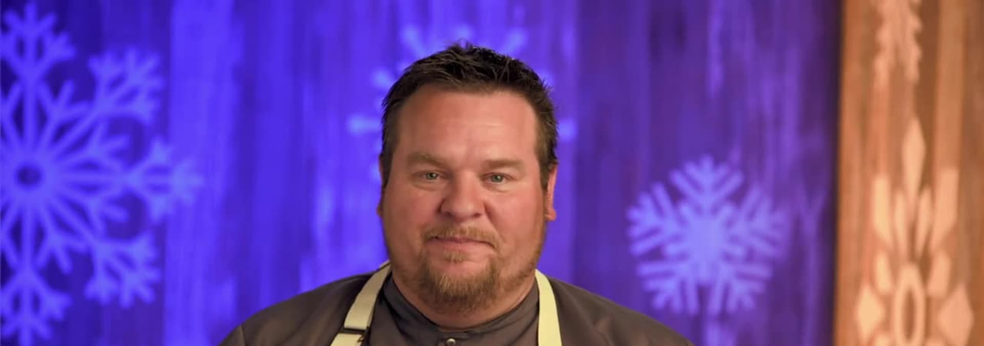The four remaining competitors bake cheesecakes decorated with ice rinks.
