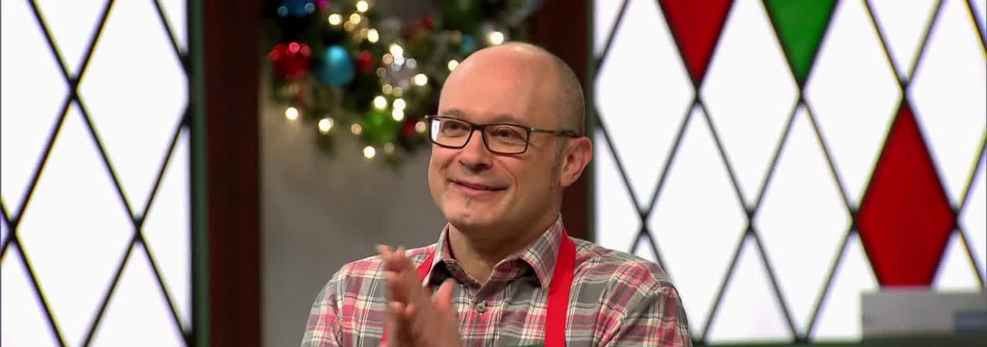 The bakers decorate cookies depicting North Pole characters getting fit.