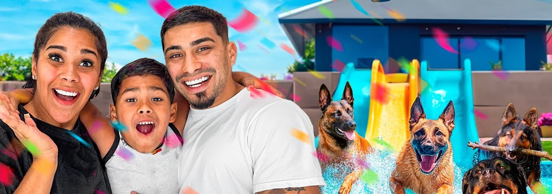 The Trench Family throws their dogs a big pool party.