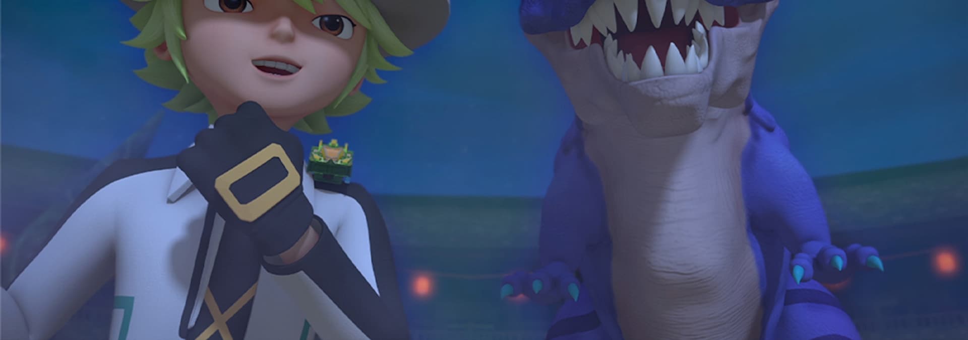 After defeating hunters, Ritchie bonds with T-Rex as they tame special dinos. Lost in the forest, T-Rex gathers fruit but faces a fierce Therizinosaurus attack!
