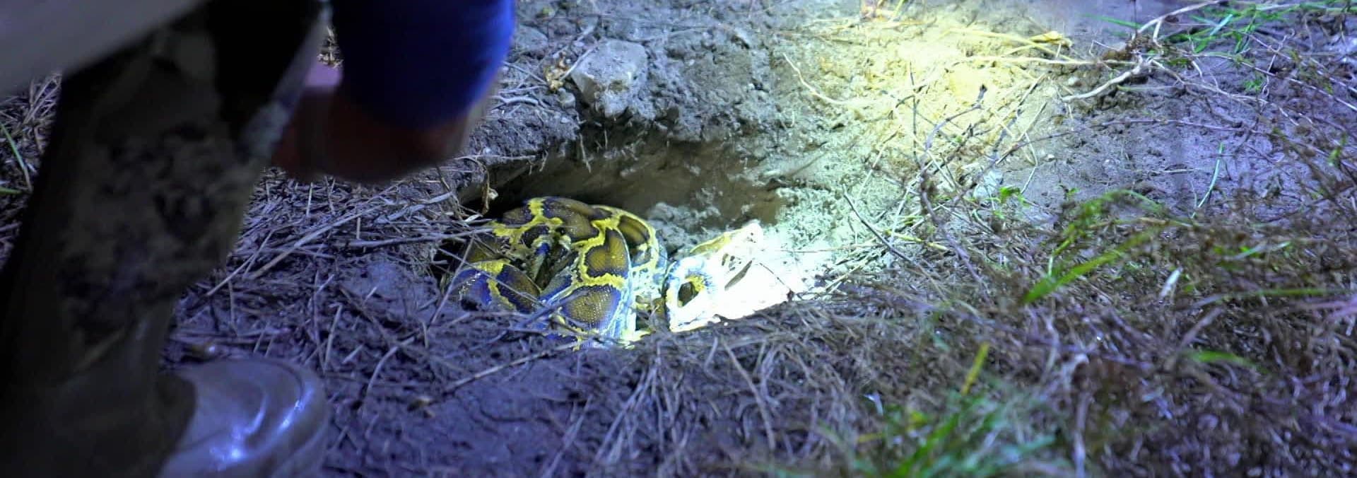 Troy and Pickle help a friend look for his lost dog. Bill and Tes search for pythons in a spot ravaged by wildfires. Zak and Bruce investigate an abandoned boat yard, and Dusty hunts in an area with a dark past.