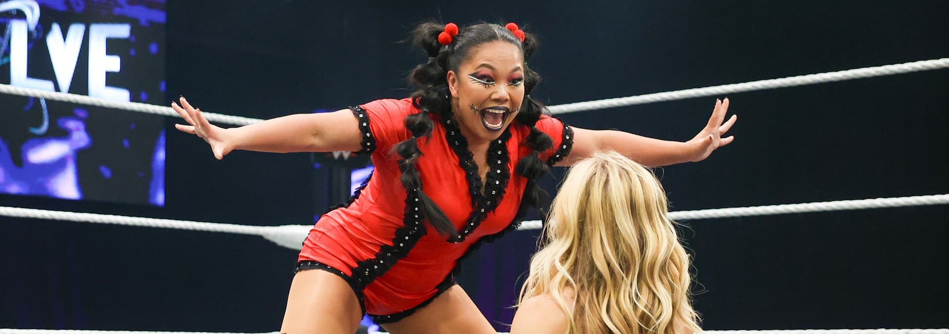 Natalya and Kali Armstrong arrive for their in-ring contract signing. The Vanity Project battle Cruz Del Toro, Joaquin Wilde and Lince Dorado.