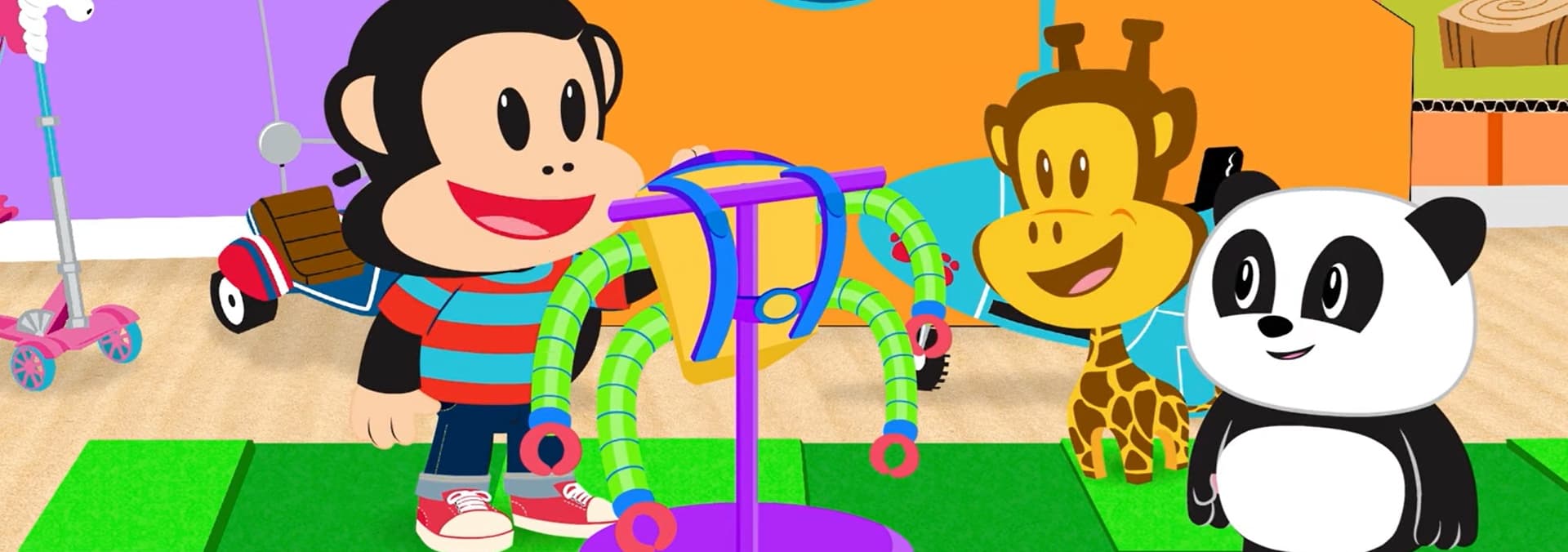 Worry Bear feels down from a rainy week and missing sunshine. / Julius invents a holiday for friends.