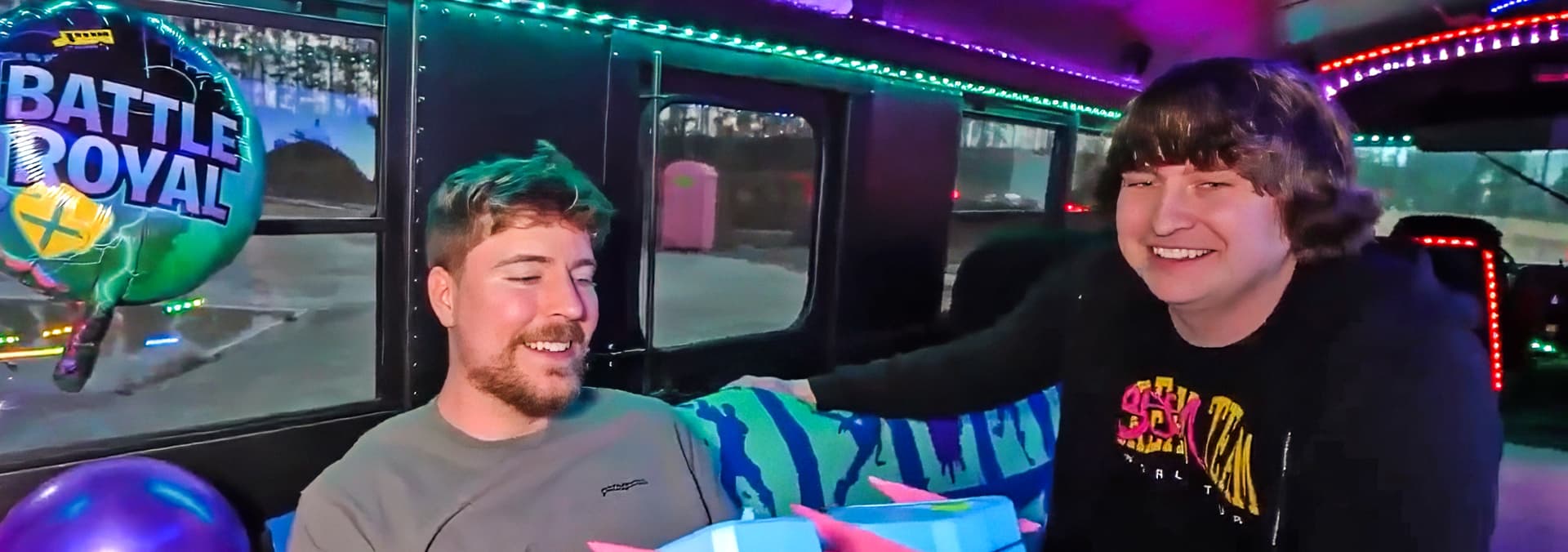 Epic builds for MrBeast including a Battle Bus, Playbutton, and Chocolate Bar!