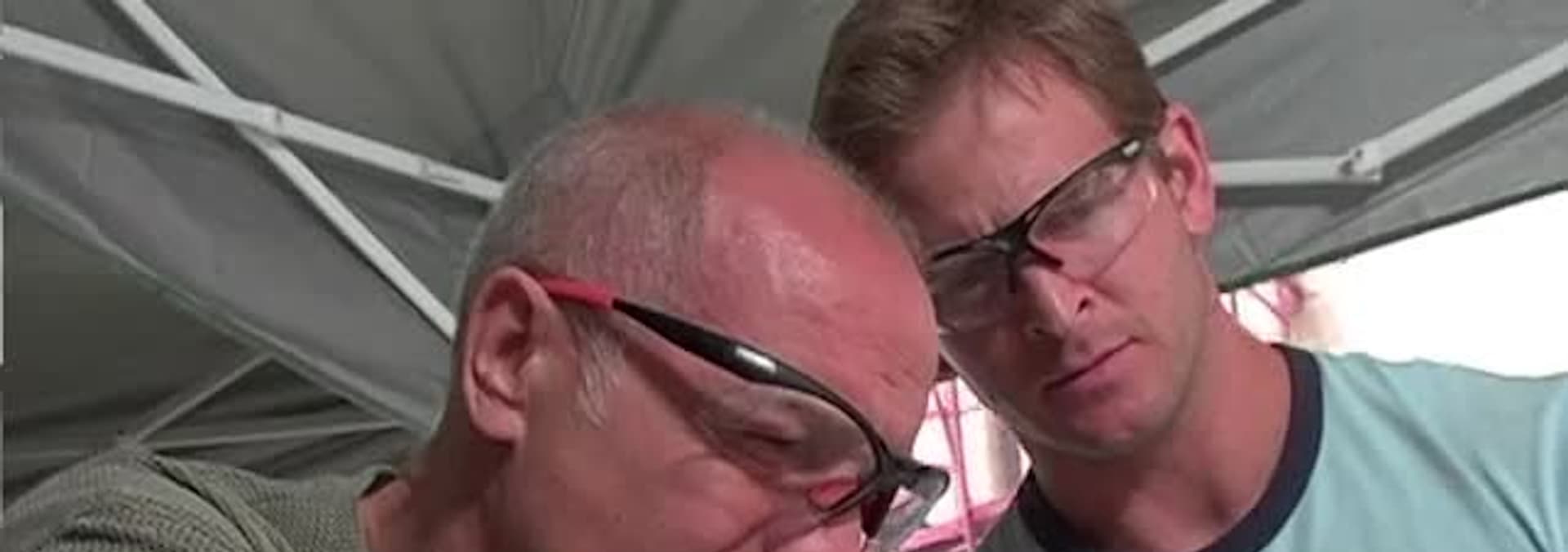Tony and Jason build a cave dedicated to the New Jersey Devils hockey team.