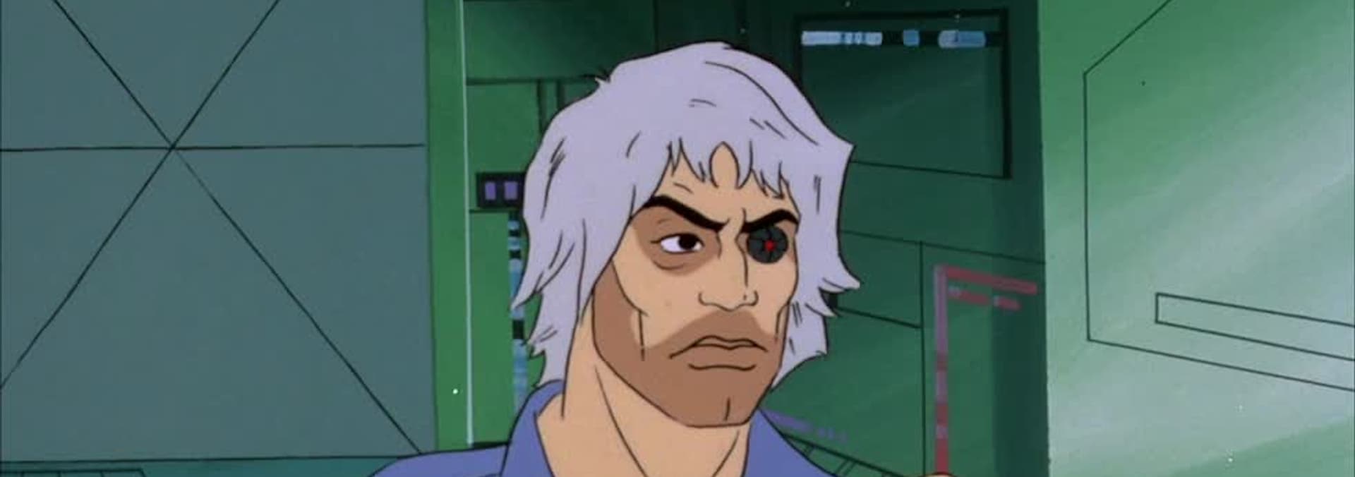 Leader-1 is shot by Crasher while attempting to destroy Cy-Kill's pulsar generator.