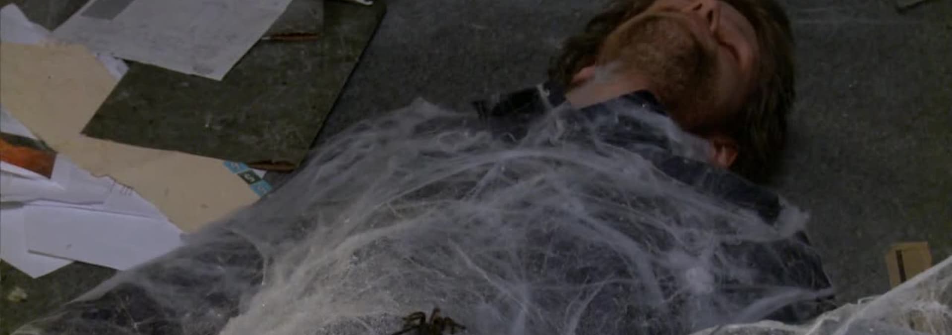 A building-inspection team fights against a monstrous spider.