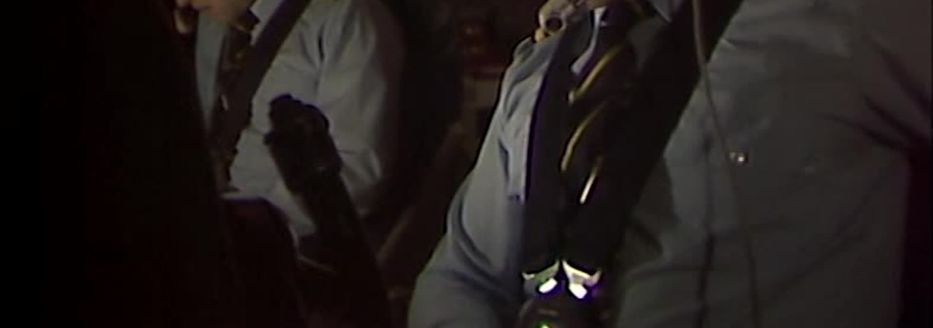 On board an aeroplane, a hijacker takes a stewardess hostage.