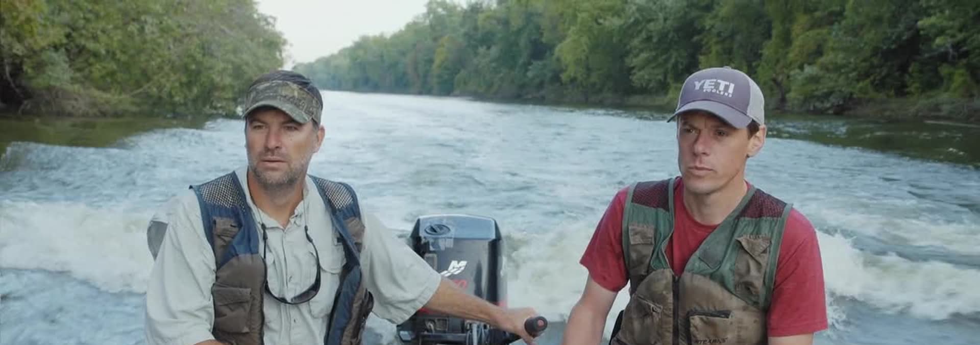 Steve sets lines for catfish and hunts squirrels on the Missouri River with biologist Parker Hall.