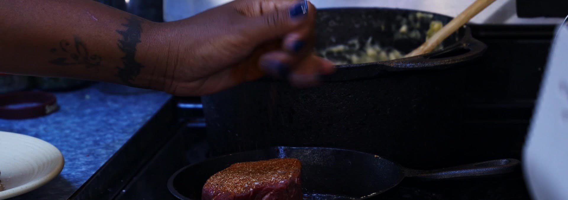 Chef Jonathan Scinto prepares an intimate dinner for Tekina and her boyfriend Raul who stood by her side through her incarceration.