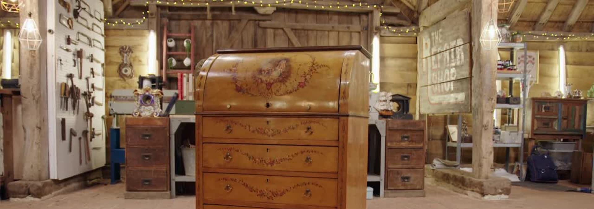 Today, the team restores an elegant wooden desk connected to one of the twentieth century's most important political movements. Susie and her niece Sophia have brought the smart piece of furniture to be restored. The desk belonged to Susie's grandmother, Una, a leading figure in the suffragette movement, along with her husband Victor who was equally passionate about the fight for women's rights. The desk is the place where Una wrote letters to her fellow campaigners, read her correspondence and wrote her diaries. Lucia Scalisi and Will Kirk join forces to bring this historic item into the 21st Century while still retaining the enormous history it holds. On a campaign of her own, Kirsten Ramsay is tasked with reviving a shop mannequin that was badly bombed in the Blitz. The mannequin, named Bert, has been a family mascot for Rene for nearly a century. It took pride of place in the window of Rene's father's tailor shop in the East End of London in the 1920s but when the shop was destroyed in the war, Bert suffered the consequences. Despite his dents and dings, Rene's daughter Shelley fell in love with Bert as a teenager when he was being brought down from the loft. Rene's vivid memories of Bert in the shop window in top hat and tails mean Kirsten enlists the skills of hatter Jayesh Vaghela to get Bert back on his smartly dressed feet once again. The final visitors to the barn are Dave and his son Lewis from Glasgow who are hoping Brenton West can get their sporting memento looking champion again. The trophy belonged to Dave's father John who won it while swimming a couple of miles in the cold waters of the Clyde in 1953 at the age of just 19. In later years John became a frogman in the police so his youthful swimming success served him well. It's a labour of love for Brenton who brings the shine back into this symbol of John's fortitude and strength.