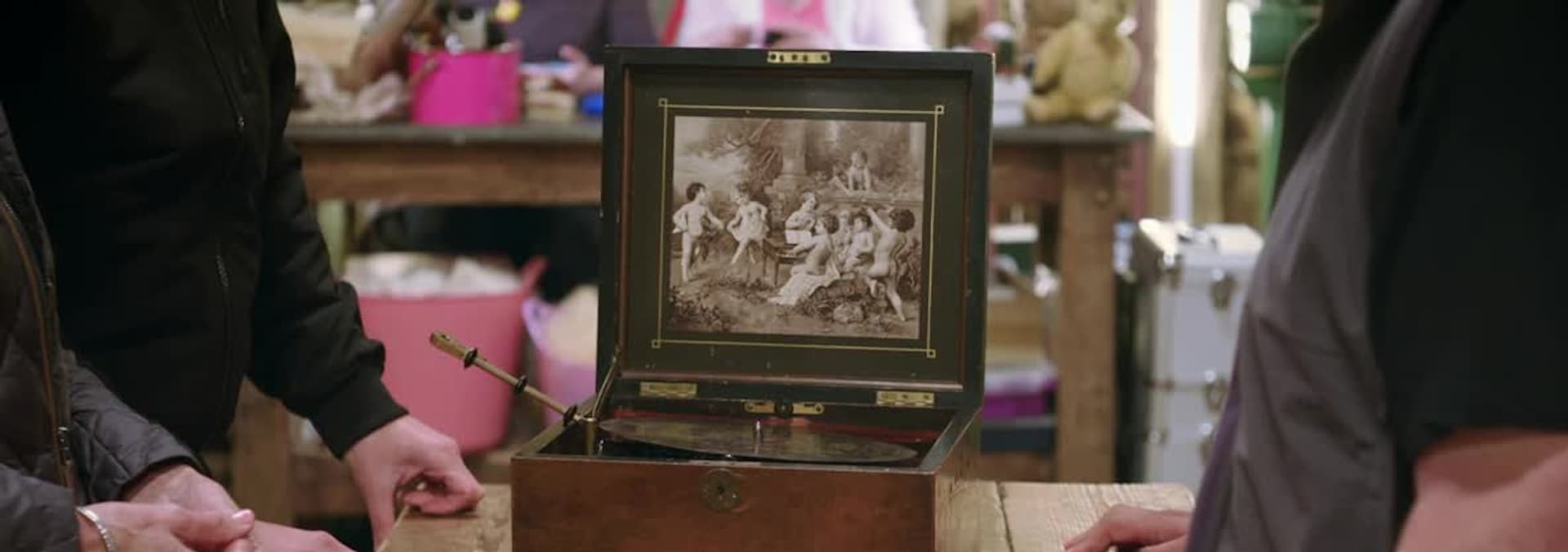 Today in the Repair Shop, Jay Blades and the team bring four treasured family heirlooms, and the memories they hold, back to life.First at the barn is Liz Cottis from Essex. She's hoping art conservator Lucia Scalisi can revive a painting with a touching history. Liz's father commissioned a local artist to paint a portrait of his beloved wife, while he was stationed in Italy in the 1940s. He paid for the work with his prized chocolate ration. To Liz it is a priceless, if faded, memento of their love, which she would love to display. Lucia sets to work lifting the dust and grime and unveils this true work of art. Dom creates a new frame to set it off a treat and reveals the now fitting tribute to Liz's much missed parents. Arriving next is Maria Bennet from Liverpool, with a guilty conscience, as well as an item to fix. She's hoping stained glass expert Matt Nickels can put things right. An unfortunate accident with her daughter in laws front door saw the decorative glass panel, they were so proud of, shattered. Matt and Dom join forces to transform the jumble of glass fragments and twisted metal framing back into a thing of beauty. Matt pieces together the complex jagged jigsaw, while Dom crafts metal bars to support and protect the panel from any future mishaps. Maria's daughter in law is over the moon and Maria is redeemed. Sue Pritchard and her son Richard are next to arrive at the barn, with a Polyphon music box which has been in the family for four generations. They need specialist Steve Kember and woodwork expert Will Kirk to give it some overdue TLC. The 120 year old music box holds happy memories of a much-missed mother but is battered and playing erratically. Steve painstakingly repairs the musical mechanism and cylinder, while Will makes it look as good as it soon sounds.