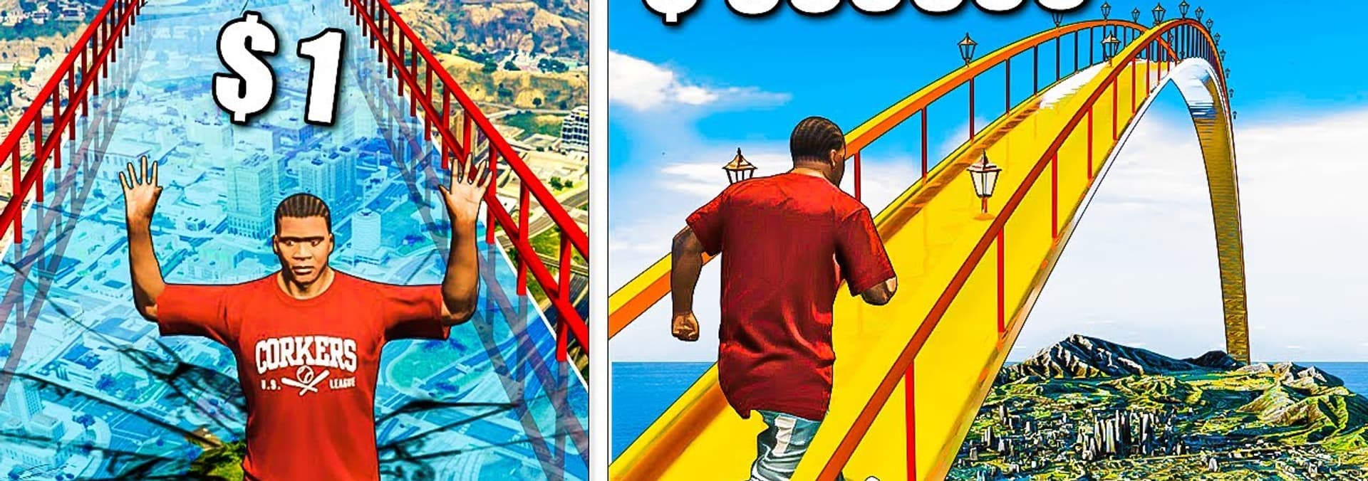 GrayStillPlays tests $1 vs $1000 bridges then tests cars vs massive pot holes in GTA 5.