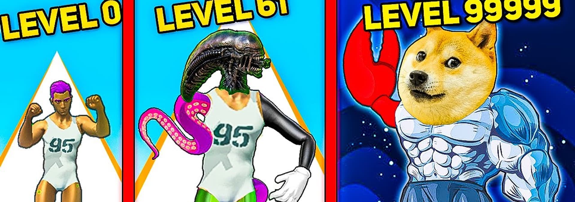 GrayStillPlays upgrades from Noob Dog to God Dog in Save the Doge then upgrades from Noob Human to God in DNA Evolution.