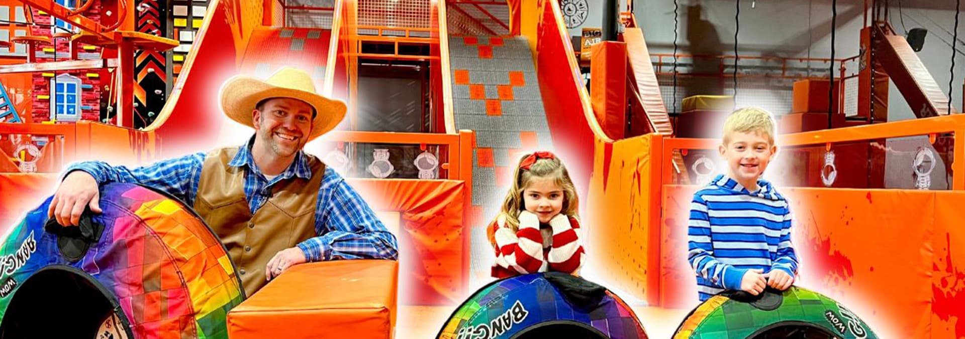 Join Cowboy Jack have some playplace fun at Big Air North Houston trampoline park for kids! Ropes course, tube chute, bull riding, jumping, and dodgeball!