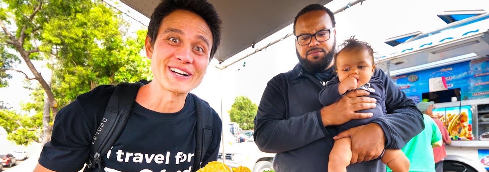 The LA food tour starts 100 Miles south in sunny San Diego. Join Mark on his journey chowing down on burgers and seafood before heading up to LA. While there, Mark hits up Korea town for the "Bang Bang" food challenge, and tries a few sandwiches and taquitos!