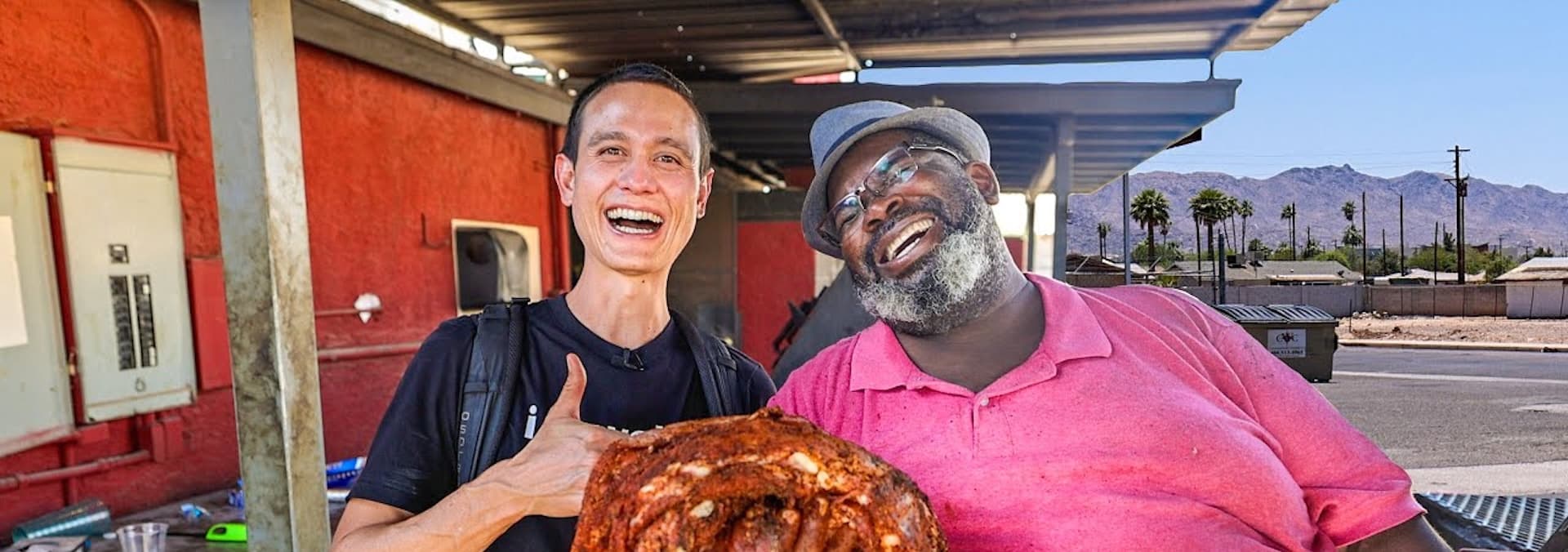 Continue with Mark on a flavor-packed food adventure in Phoenix, Arizona! He dives into a meat-bathtub of ultimate carnitas, tasting some of the best Mexican street food in the city.