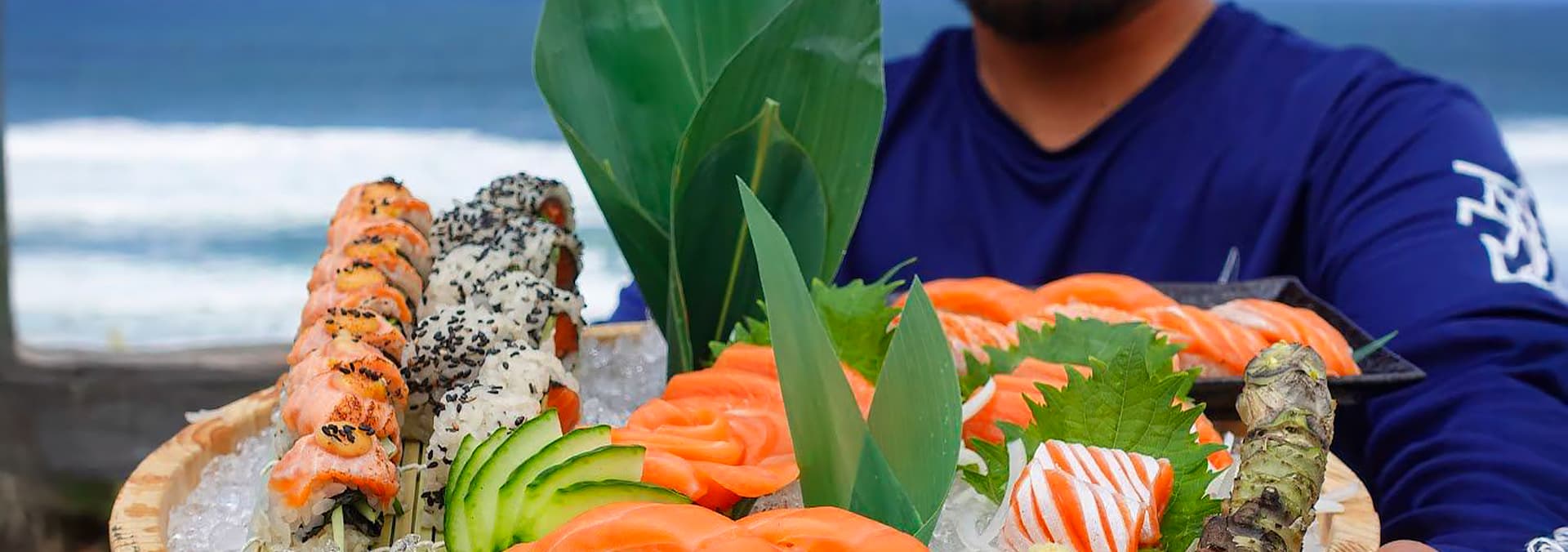 Continuing the salmon journey, a recent catch is expertly filleted and made into sashimi, rolls, and seared salmon outdoors.