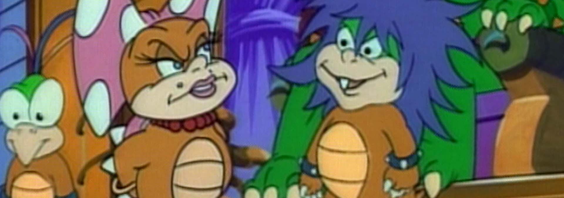 King Koopa drops paint on the Mushroom people, turning some red and others blue. // The Koopa kids clean up the castle - and dump all their junk into a warp pipe.