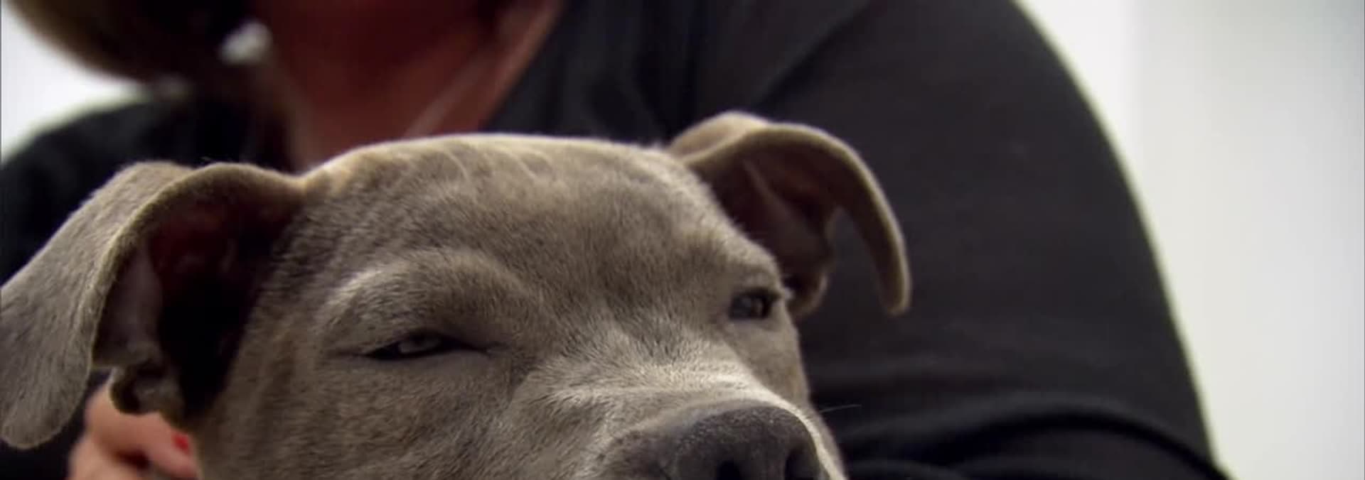 A Staffie puppy called Jasper has a problem with his legs where they are growing in the wrong direction.