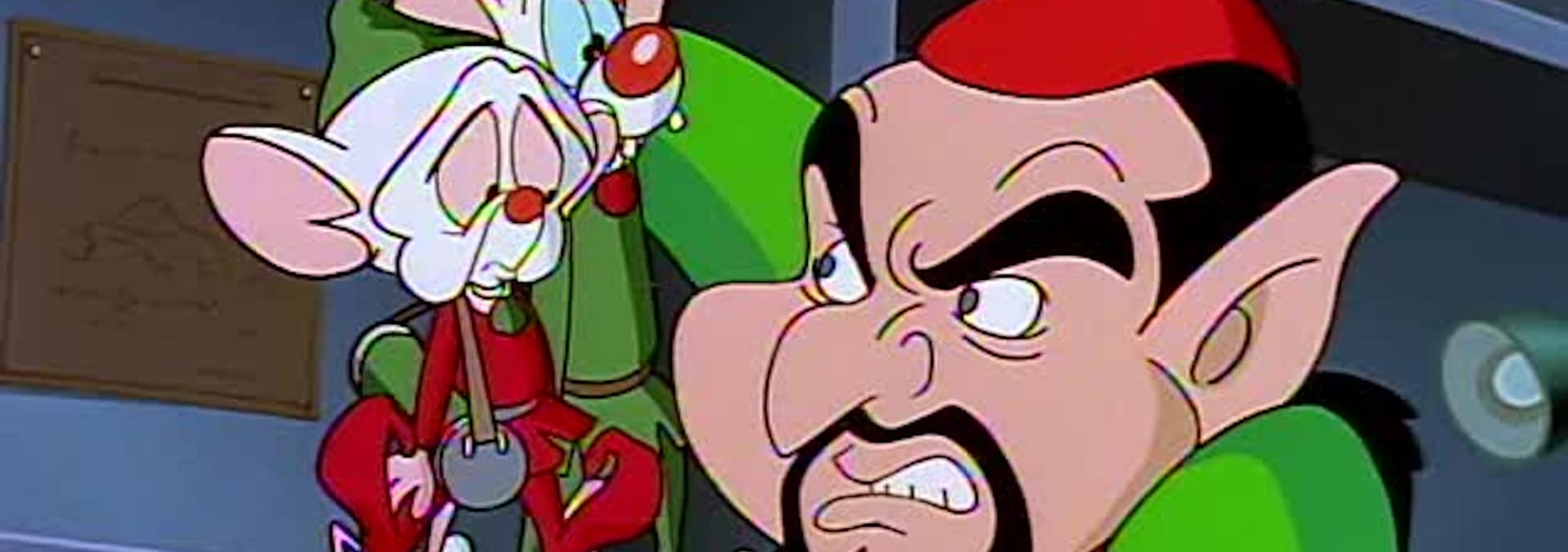 The Brain designs a mesmerizing doll, Noodle Noggin, which resembles him. His plan is to make one for every house so he can make people do his every command through mind control. Since it would take him and Pinky over a hundred years to make enough Noodle Noggin dolls on their own, The Brain decides to use Santa's (guest star voice talent EARL BOEN) workshop. He and Pinky go to the North Pole and infiltrate Santa's workplace. Incredibly, they get the dolls made and Santa delivers them to every house around the world. When everyone on the planet is mesmerized and the time comes for The Brain to begin his commands, he is overwhelmed by the Christmas spirit and instead demands that everyone wish each other a Merry Christmas.
