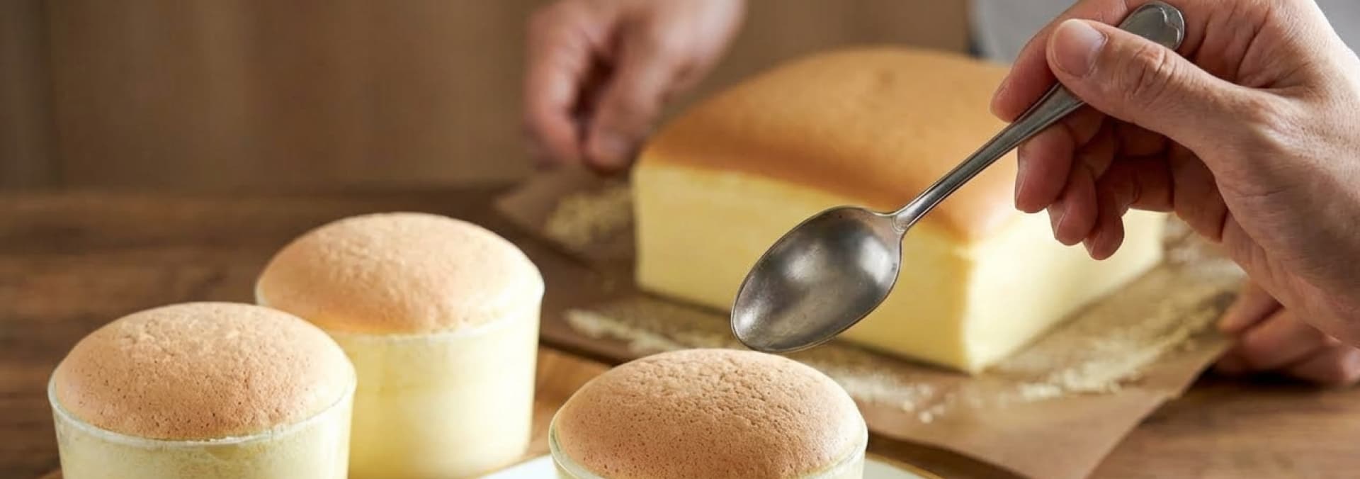 Two soft Castella desserts made gently: fluffy Taiwanese Castella cake and silky Castella creme caramel.