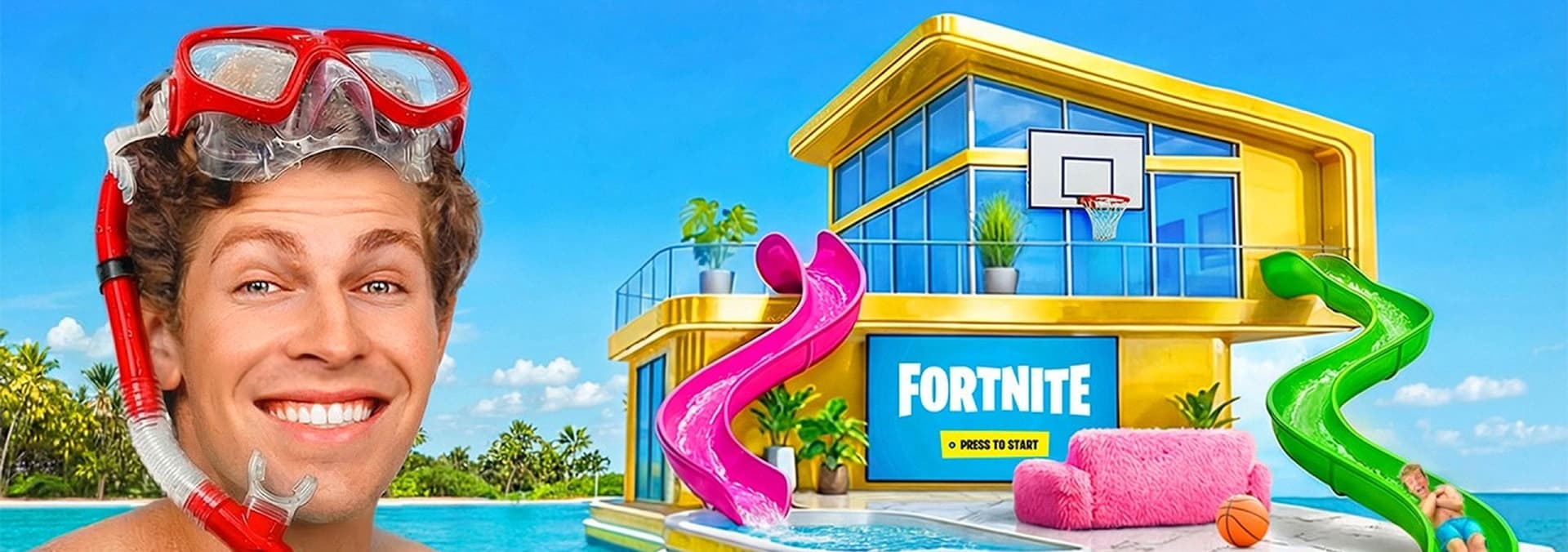 Ben Azelart transforms his house into a giant waterpark, challenging his friend Cam to a building competition!