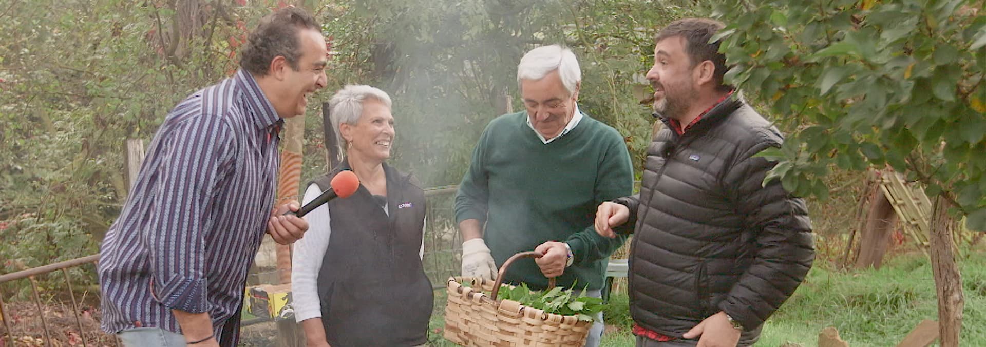 Txaro zapiain, dueña del restaurante-sidreria roxario. Ander selecciona manzanas con txaro y luego prueba la tortilla de bacalao que esta elabora siguiendo la receta de su madre.