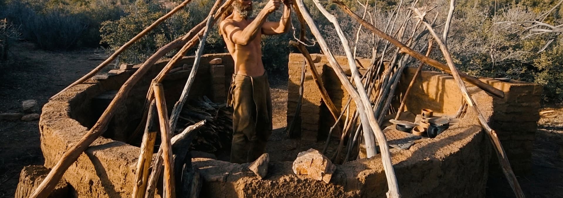 I showcase the primitive bushcraft and foraging skills used to build an adobe hut in the harsh high desert, adapting to heat, cold, arid conditions, and scarce food.