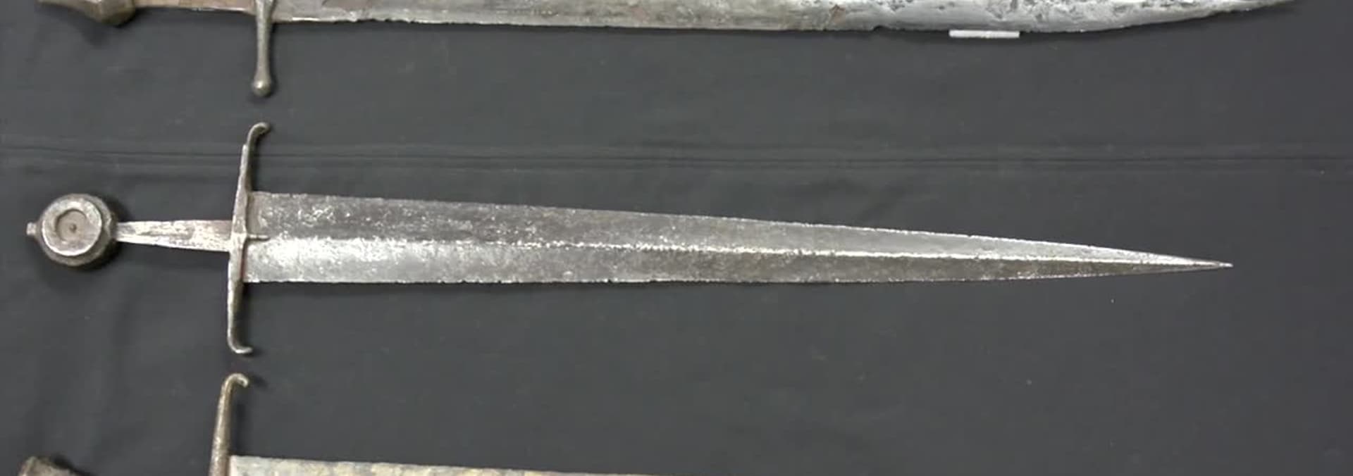 Preserved swords from the Battle of Castillon in 1453 have been found on a river bank.